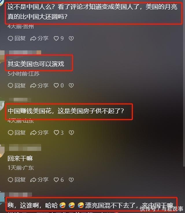 只是评论区似乎并不是很友好,虽然有不少粉丝表达了对她的喜欢,但更多的是质疑她回国的目的, 甚至有网友猜测她这是在美国混不下去了跑回国内“捞金”了,明明早些年那么风光,