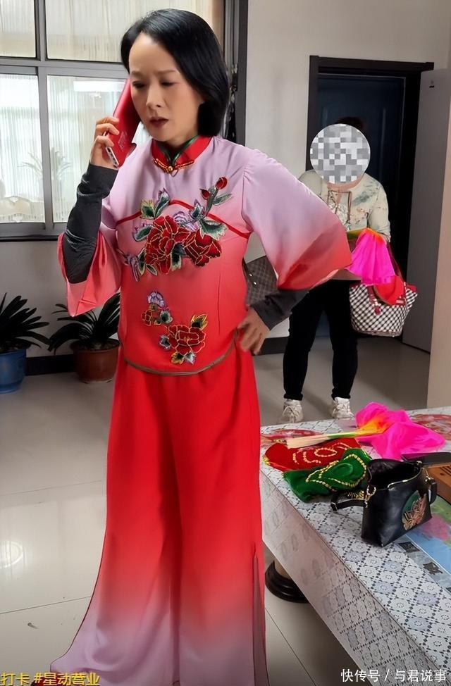 还有老太太跳广场舞的服装造型,看起来怪喜庆的,就是实在没看出来她这究竟拍了个什么戏。 这戏一拍就拍到了天黑,直到晚上八点的时候她们才吃上饭,看起来确实挺高能量挺辛苦的。